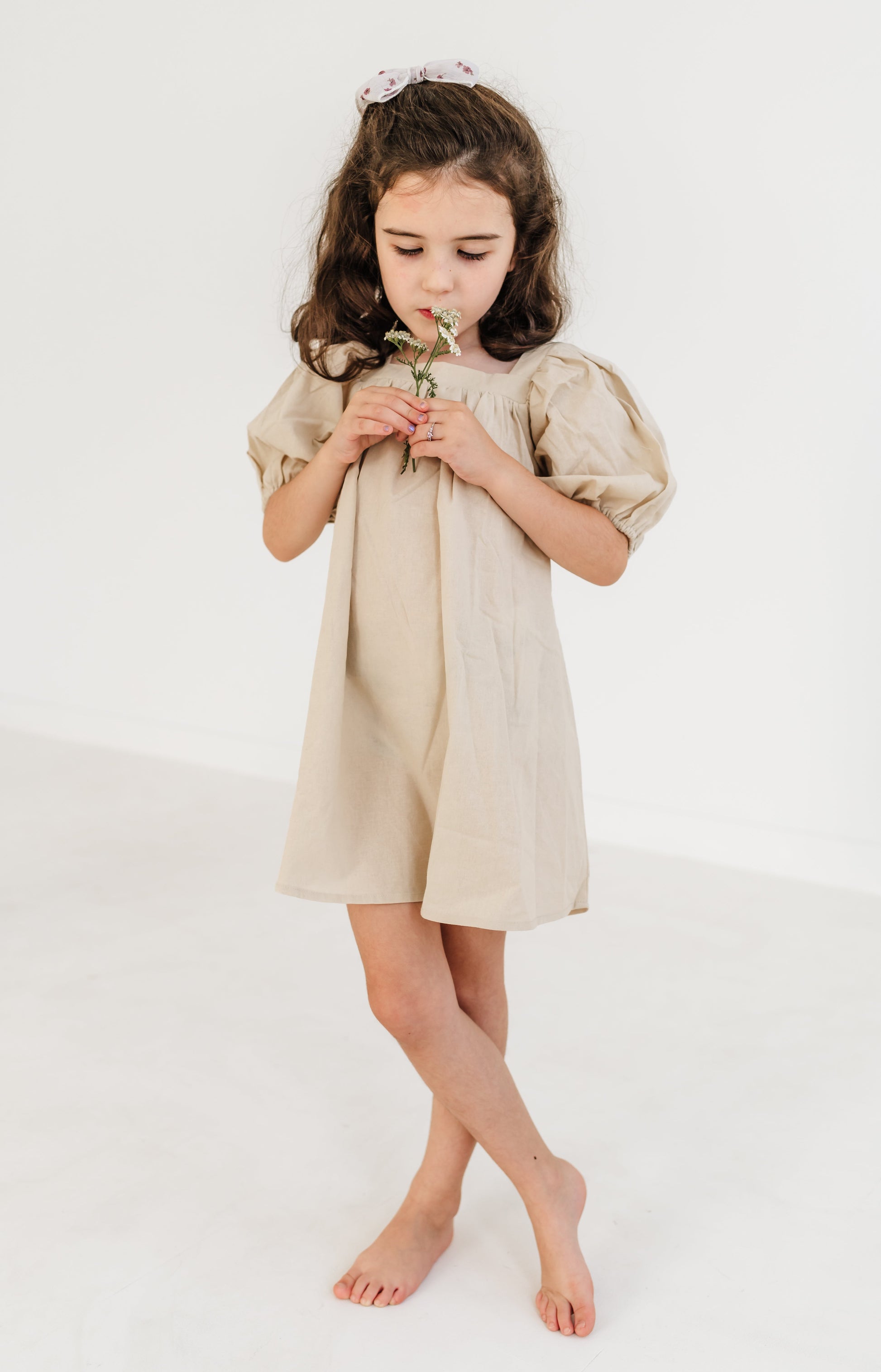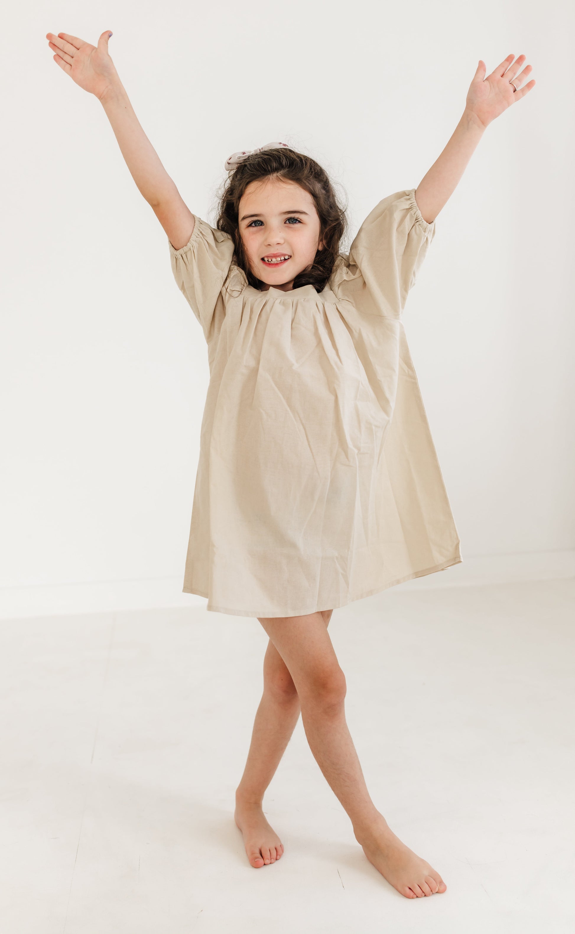 Introducing The Day Dress - a charming new addition to any young girl's wardrobe. Made from 100% Organic Cotton, this dress offers both comfort and eco-friendly qualities. With playful quarter-length puffy sleeves and elasticized cuffs, it allows for effortless movement and a relaxed fit. Let the billowy design of this dress bring a touch of whimsy to every twirl. To keep it looking its best, machine wash cold with similar colors, tumble dry low, and iron on low heat if needed. Perfect for any occasion, this dress is bound to be a cherished favorite.